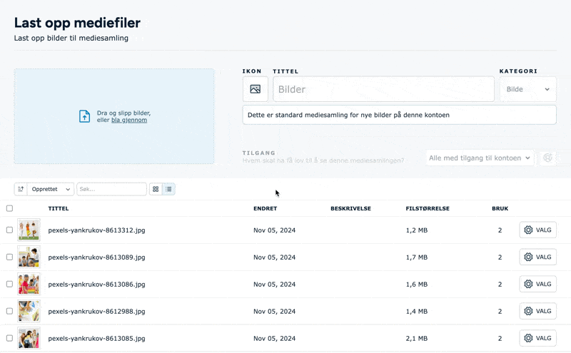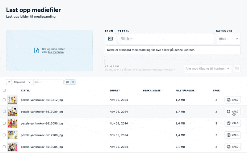 - Klikk "Endre" på aktuell mediesamling og last opp mediefiler fra din enhet.